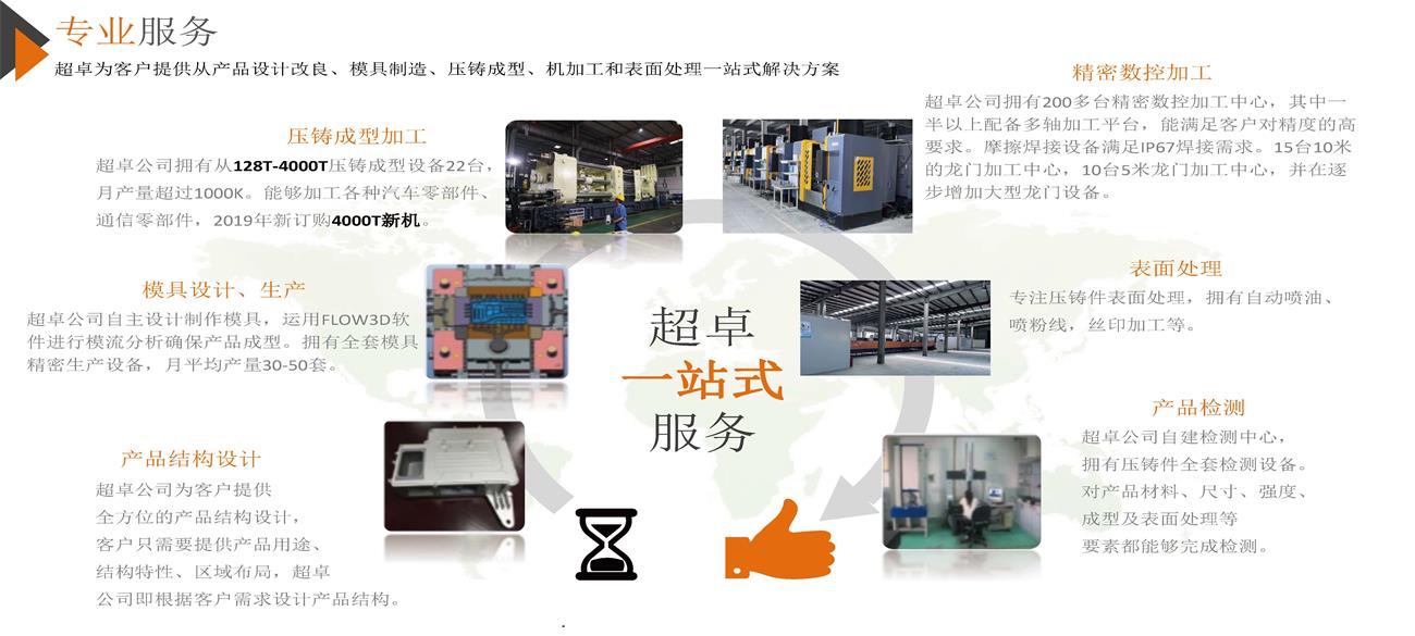 超卓從事壓鑄30年,我們的創(chuàng )新理念和經(jīng)驗能夠為您提供價(jià)格合理、品質(zhì)優(yōu)良和快速交貨的服務(wù)。